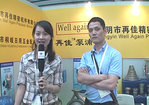 在2011上海紡機展的現(xiàn)場,中國紡機網記者采訪到再佳精密的吳總,同時吳總也介紹了公司參展的相關情況:“再佳精密這幾年發(fā)展比較快,主要是針對這個印染機械這塊開發(fā)的印染機械的水泵,幾年特別推出了一款環(huán)保的水泵,為了融合市場的需求。今年的銷量比較很快。我們明年準備開發(fā)比較先進的跟國外同步的水泵,就是推向市場,融合客戶的需求。它主要是做機械上用,染發(fā)的、染布的這一塊,另一方面來說相對污染比較嚴重的那塊是通過水泵跟機械的配合,它可以降低能源,環(huán)保這塊就是融合國內的需求,就是這樣子的產品。