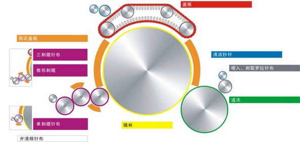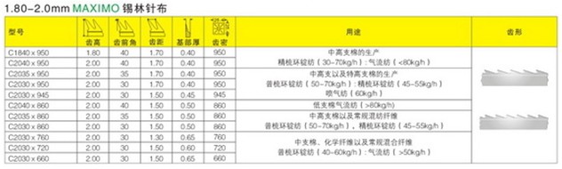 2.00高針布用于高產(chǎn)梳理機,齒形的設(shè)計可以防止小碎片和雜志的附著。