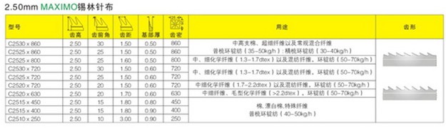 2.5mm高的針布用于高產(chǎn)和常規(guī)型號梳理機,適用于梳理中低支棉和所有合成纖維。