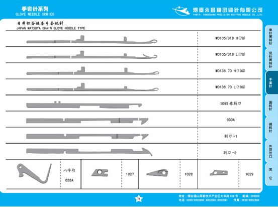 煙臺(tái)永昌精密織針有限公司主要生產(chǎn)“飛箭”牌襪機(jī)針、手套針、橫機(jī)針、園機(jī)針及與各種織針配套的輔針、配件等,其主導(dǎo)產(chǎn)品單、雙針筒襪機(jī)針和手套機(jī)針及配套產(chǎn)品暢銷全國各地,部分產(chǎn)品進(jìn)入國際市場(chǎng)。公司位于山東煙臺(tái)市福山高新產(chǎn)業(yè)區(qū),公司創(chuàng)建于1990年,經(jīng)過十幾年的經(jīng)驗(yàn)積累與技術(shù)創(chuàng)新,現(xiàn)在公司已擁有先進(jìn)的生產(chǎn)設(shè)備及完善的質(zhì)量檢測(cè)手段,并擁有一支高素質(zhì)、高凝聚力的員工隊(duì)伍,為日漸挑剔的市場(chǎng)需求提供了技術(shù)保證。
