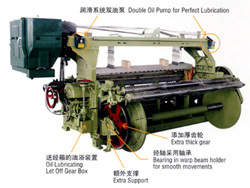 送徑: 半積極外側(cè)式機(jī)械送徑,備有三后梁經(jīng)紗漲力控制機(jī)構(gòu),經(jīng)軸盤片直徑φ550或φ400毫米。