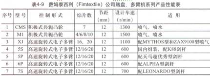 費(fèi)姆泰西利(Fimtextile)公司踏盤、多臂機(jī)系列產(chǎn)品性能見表4-9。