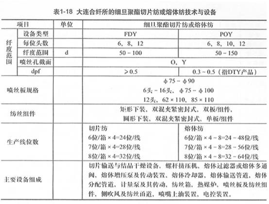 ②高效多頭聚酯熔體紡絲(FDY、TCS、POY)成套技術(shù)與設(shè)備? 該機(jī)的技術(shù)規(guī)格見(jiàn)表1—17。 ③細(xì)旦聚酯切片紡或熔體紡FDY、POY紡絲機(jī)? 該機(jī)的技術(shù)規(guī)格見(jiàn)表1-18。