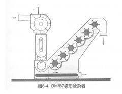·OM/87梯形除雜器(圖6-4)??? 適用于任何種類纖維的除雜,可排除任何雜質(zhì)(植物類雜質(zhì),屬,塑料,動(dòng)物類雜質(zhì)等),特別適用于紡織品廢料加工。該機(jī)由三部分組成: