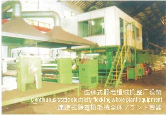 該生產(chǎn)線包括絨毛制作、連續(xù)植絨以及后道壓花、磨花維、棉纖維等??芍步q毛有尼龍纖維、粘膠纖維、棉纖維等。?