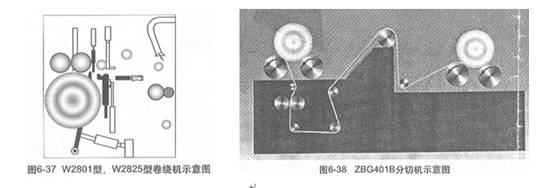 鄭紡機(jī)也定型生產(chǎn)自動(dòng)卷繞機(jī)和分切機(jī),其結(jié)構(gòu)圖和主要技術(shù)規(guī)格分別見(jiàn)圖6-37、圖6-38和表6-8、表6-9。