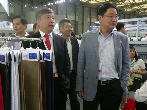 6月10日展會一開幕,中國紡織工業(yè)聯(lián)合會副會長楊紀(jì)朝、集團(tuán)公司董事長張杰、總裁劉海濤、副總裁葉茂新等就來到E1館,在各企業(yè)展臺前,仔細(xì)觀看展品、詢問企業(yè)經(jīng)營及新產(chǎn)品開發(fā)情況,并與工作人員合影留念。董事會秘書石廷洪及集團(tuán)公司外部董事關(guān)永光、葉惠成、郭國榮、祁澤瑞等也在展會首日前來參觀、助陣。