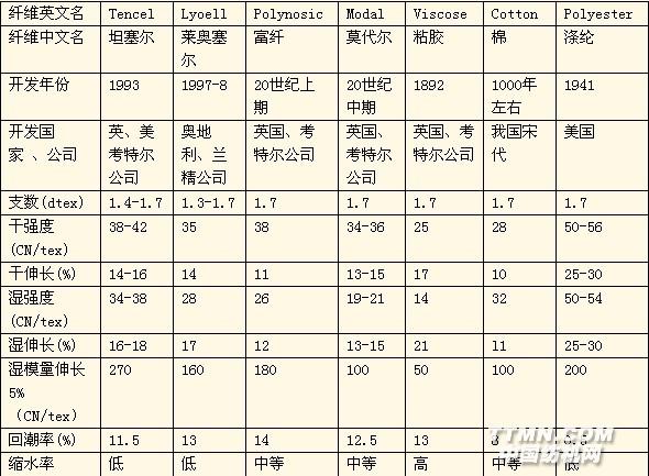 一、纖維性能的比較