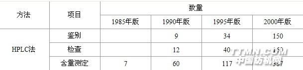 高效液相色譜我國藥典收載高效液相色譜法項(xiàng)目和數(shù)量比較表: