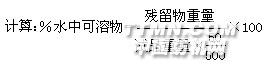 (一)色澤 色澤用肉眼觀察試品便能辨別。(二)水分 與淀粉分析法中水分的測定同。(三)灰分 與淀粉分析法中灰分的測定同。(四)未轉(zhuǎn)變的淀粉或雜質(zhì) 配成5%的溶液,經(jīng)劇烈震蕩后,靜置約12小時,移取上層澄清液(記下容量),放在蒸發(fā)皿中烘干,稱它重量,即可算出此品的可溶性物百分比。根據(jù)此品的含水量和可溶性物量,便可算出不溶性物的含量;如此項數(shù)值超過3%,表示此品的雜質(zhì)太多,不能應用。 同時,將上述5%液體的沉淀物,經(jīng)離心機濃縮后,沾取少許,放在顯微鏡下觀察,看是否有砂泥等硬粒,如硬粒太多,即使不溶性物含量在3%以下,也同樣不能使用。因糊精或印染膠應用時,雖要經(jīng)過組織細密的布袋榨濾,但細小砂??赡艽┻^布孔進入調(diào)制的色漿中,其后嵌入花紋花筒中,則有損花筒表面及刮刀,而產(chǎn)生條花現(xiàn)象。操作方法: 稱取試品約25克,置于400毫升的燒杯中,加水200毫升,攪勻。用水洗入500毫升的量瓶中,經(jīng)劇烈震蕩后,靜置約12小時。移取上層清液50毫升,置于已知重的蒸發(fā)皿中,放在水浴上蒸發(fā)至干,然后移置105℃烘箱中烘至重量不變;最后放在干燥器中冷卻后稱其重量。