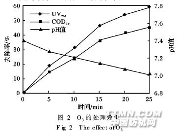 2 結(jié)果與討論2.1 單獨臭氧工藝的處理效果 單獨臭氧工藝的處理效果見圖2。