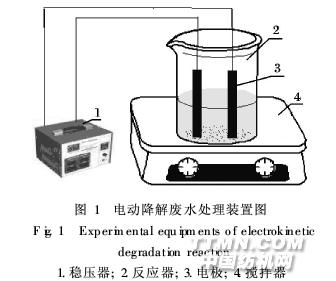 近年來,來自于印染紡織企業(yè)染料廢水排放已 經(jīng)對水域環(huán)境產(chǎn)生了嚴(yán)重的危害。調(diào)研證實,染料 廢水主要來自于中、小型紡織、印染企業(yè),因而其具 有分布相對分散、集中處理難以進行的特點。除此 之外,由于中、小型紡織、印染企業(yè)在染色工程中使 用大量的分散劑、媒染劑等助劑,使得染料廢水的可 生化性明顯降低。因此,探索和研究新型染料廢水 處理技術(shù)是我國環(huán)境領(lǐng)域當(dāng)前急需解決的難題 之一。目前,針對印染廢水處理的研究主要集中在物 理吸附、化學(xué)試劑氧化、膜處理、光催化氧化以及微 生物降解處理等技術(shù)。孫德帥等[1-2]研究了粉煤灰 對活性染料、酸性染料、陽離子染料廢水的吸附脫色 處理,效果很好,但吸附劑再生及其后處理有一定的 難度。Fenton試劑法可以較好的氧化某些特定的染 料,可局部的推廣,但成本較高[3]。采用膜技術(shù)對 染料廢水的脫色處理取得好的效果[4-5],但是國內(nèi)在 膜技術(shù)的研究和應(yīng)用上仍存在困難。生化分解法能 有效的分解廢水中的有機高分子,但因為廢水本身 的毒性,對微生物有殺傷作用,這也抑制了該方法取 得更佳的效果[6]。光催化氧化法和超聲降解技術(shù) 則還處在研究初期,但前景被普遍看好[7]??偠?之,針對染料廢水的毒物種類多、色度高、污染大的 特點,開發(fā)和研究新的染料廢水處理途徑在當(dāng)前還 是具有鮮明的理論價值和應(yīng)用意義[8-9]。 本研究旨在開發(fā)利用電動降解技術(shù)來處理酸性品紅廢水。實驗主要考察電動降解技術(shù)處理酸性品 紅廢水的工藝條件,分析降解的機理等。