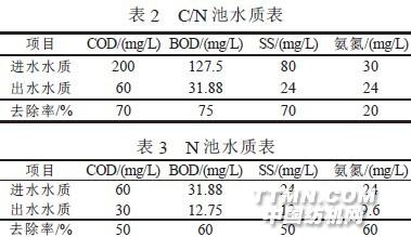 2 曝氣生物濾池工程設計實例廣東新會污水處理廠, 日處理市政污水Q=40 000m3/d。采用: 預處理→水解酸化→C/N 曝氣生物濾池→ N曝氣生物濾池→消毒排放的工藝流程。兩級濾池進出水水質(zhì)要求見表2、表3。試進行BAF 池的計算。