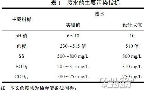 1 工程概況廣東某印染廠是一家主營牛仔洗漂和牛仔紗線漿染企業(yè),該廠每天排放約4000 m3高色度、高懸浮物含量的服裝洗漂、染色廢水, 這些廢水以前僅經(jīng)簡(jiǎn)單的物化處理, 出水不能達(dá)標(biāo),且污泥量大。為貫徹我國環(huán)境保護(hù)的方針,整治該地區(qū)的水污染,我公司承擔(dān)了該廠的廢水治理工作。 由于該廠地處二類水源保護(hù)區(qū),故執(zhí)行《廣州市污水排放標(biāo)準(zhǔn)》DB44 37-90一級(jí)新擴(kuò)改標(biāo)準(zhǔn):pH:6~9;色度:40倍;SS:70 mg/L;BOD5:30 mg/L;CODCr:80 mg/L。 表1為該廠廢水主要污染指標(biāo)的實(shí)測(cè)數(shù)據(jù)。 由表1可知,BOD5/CODcr=0.17,廢水生化性欠佳。該廠使用大量靛藍(lán)、硫化黑及燒堿、滲透劑等多種印染助劑,是造成廢水生化性差的主要原因。