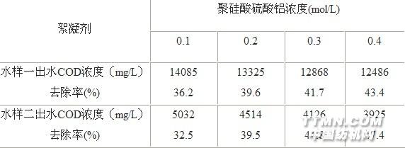 二. 結果與討論3.1各種濃度的聚硅酸硫酸鋁處理效果的對比在相同的條件下取50ml 原水,分別加入各種濃度的聚硅酸硫酸鋁2.5ml,對比各種濃度的聚硅酸硫酸鋁對兩種濃度的PVA廢水的處理效果。 表1 不同濃度的聚硅酸硫酸鋁對兩種水樣的處理效果.jpg)