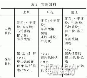 1.2 紡織用漿料纖維材料或織物在印染加工中可去除的漿料是上漿用漿料和印花、整理用漿料,這些種類繁多的漿料在印染加工中都會被去除,成為廢水污染源之一,印染各工序常用漿料如表1。.jpg)