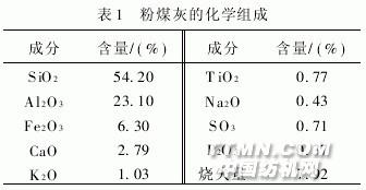 早在1995年,我國粉煤灰累計(jì)庫存量就達(dá)6.6×108t,占地2.27×104hm2[1]。1995年后粉煤灰的年排放量都在1.0×108t以上,居世界之首[2],其中,只有少部分得到綜合利用。大量未得到利用的粉煤灰對(duì)環(huán)境造成了許多不良影響。粉煤灰是一種松散固體集合物,是由Si、Al、Ca、Fe、C等元素的氧化物和一些微量元素、稀有元素組成的海綿狀和空心球狀的細(xì)小顆粒,具有很大的比表面積,其主要的化學(xué)組成見表1。