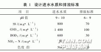/d,處理后的出水水質(zhì),執(zhí)行《紡織染整工業(yè)水污染物排放標(biāo)準(zhǔn)》(GB4287—92)中一級(jí)標(biāo)準(zhǔn)。該工程設(shè)計(jì)進(jìn)水水質(zhì)和排放標(biāo)準(zhǔn)見(jiàn)表1。2 廢水處理工藝(1)設(shè)計(jì)原則 (A)根據(jù)工程的具體情況和特點(diǎn),采用成熟可靠的污水處理工藝[1,2],積極慎重地采用新技術(shù)、新材料、新裝備,實(shí)用性與先進(jìn)性兼顧;(B)污水處理流程要求簡(jiǎn)單、可靠,占地面積小,投資少,運(yùn)轉(zhuǎn)費(fèi)用低;(C)污水處理工程的管理、運(yùn)行和維修方便,自動(dòng)化程度高,勞動(dòng)強(qiáng)度低;(D)污水處理工藝具有較高的可靠性、穩(wěn)定性、連續(xù)性,耐沖擊負(fù)荷;(E)符合國(guó)家《印染行業(yè)廢水污染防治技術(shù)政策》及其它有關(guān)規(guī)范。
