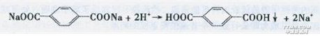 聚酯的堿減量工藝、PVC漿料織物堿退漿,其廢水具有特殊性。經(jīng)測(cè)定,其中堿減量廢水CODcr可達(dá)20000以上,BOD5達(dá)15000以上,pH≈13;退漿廢水CODcr可達(dá)15000,BOD5達(dá)3000-4000,pH≈12。這兩種廢水約占全部印染廢水的10%左右,屬高濃度混合廢水。如果按照傳統(tǒng)方法把它們與其他印染廢水混合處理,將會(huì)提高混合后的CODcr值,顯然不科學(xué),也不經(jīng)濟(jì)。本人認(rèn)為,把堿減量、退漿廢水分流后進(jìn)行局部(酸中和之后)預(yù)處理,然后再與其他印染廢水混合處理是明智之舉。 4.1 升流式厭氧污泥床(UASB)反應(yīng)器預(yù)處理 升流式厭氧污泥床(UASB)反應(yīng)器是從荷蘭引進(jìn)的一種處理高濃度有機(jī)廢水的設(shè)備。它集生化反應(yīng)、沉淀、沼氣收集于一體。其工作原理是廢水從反應(yīng)器底部進(jìn)入,向上依次通過污泥床區(qū)、懸浮污泥區(qū),并進(jìn)行生物降解反應(yīng),使廢水中的有機(jī)物濃度大幅度降低,最后進(jìn)入三相分離區(qū)。通過三相分離器,使氣、固、液三相得到有效分離,分離后的污泥可自行回流到污泥床區(qū),并使污泥床區(qū)保持很高的污泥濃度。UASB反應(yīng)器具有很高的容積負(fù)荷率,它在投資、占地、運(yùn)行費(fèi)用和操作管理方面都有一定的優(yōu)勢(shì)和競(jìng)爭(zhēng)力,從實(shí)際使用情況來看,將其作為堿減量、退漿廢水預(yù)處理是可行的。4.2 PTA回用技術(shù)的嘗試 堿減量廢水、退漿廢水都屬聚酯水解廢水,主要組分有對(duì)苯二甲酸鈉、乙二醇以及丙烯酸酯類水解物等。 從預(yù)處理?xiàng)l件看,直鏈烴化合物較易被微生物降解,而對(duì)苯二甲酸鈉的苯環(huán)組成較為穩(wěn)定,很難降解為二氧化碳和水。有人提出,聚酯水解廢水在酸性條件下,對(duì)苯二甲酸鈉經(jīng)化學(xué)方法置換(酸析)出對(duì)苯二甲酸(PTA),對(duì)苯二甲酸是固體有機(jī)物,可用物理方法將它從水中分離。反應(yīng)式如下: