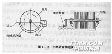 接觸反應(yīng)槽內(nèi)充滿污水,轉(zhuǎn)盤交替地和空氣與污水相接觸。經(jīng)過一段時(shí)間后,在轉(zhuǎn)盤上即附著一層棲息著大量微生物的生物膜。微生物的種屬組成逐漸穩(wěn)定,其新陳代謝功能也逐步地發(fā)揮出來,并達(dá)到穩(wěn)定的程度,污水中的有機(jī)污染物為生物膜所降解。生物膜逐級(jí)增厚,在其內(nèi)部形成厭氧層,并開始老化。老化的生物膜在污水水流與盤面之間產(chǎn)生的剪切力的作用下剝落,剝落的破碎生物膜在二次沉淀池內(nèi)被截留,生物膜脫落形成的污泥密度較高、易于沉淀。