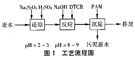 3.1 電鍍廠廢水處理 運(yùn)行條件及處理結(jié)果分別見表1、2,處理工藝見圖1。
