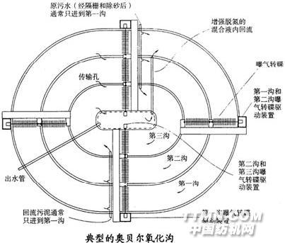 氧化溝本身的典型構(gòu)造和流程見下圖: