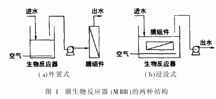吳春篤簡小捷(江蘇大學環(huán)境學院,江蘇鎮(zhèn)江212013)膜生物反應器(MembraneBioreactor,簡稱MBR),是集高效膜分離技術(shù)和生物反應器的生物降解作用于一體的生物化學反應系統(tǒng)。它用膜組件替代傳統(tǒng)活性污泥法中的沉淀池,實現(xiàn)泥水分離,從而對廢水進行處理,具有固液分離率高、出水水質(zhì)好、處理效率高、占地空間小和運行管理簡單等特點。我國對MBR的研究時間雖不長,但發(fā)展十分迅速[1]。1 概述1.1 膜生物反應器(MBR)目前,我國研究的膜生物反應器(MBR)主要用于固液分離與截留,即分離膜反應器,它是懸浮生長反應器和膜過濾裝置的結(jié)合。按照膜單元的放置,MBR分為外置式[循環(huán)式,圖1(a)和浸沒式(一體式,圖1(b)];按照是否需要氧,又可分為好氧和厭氧膜生物反應器。