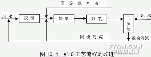 A2/O工藝在去除有機污染物的同時,具有一定脫氮除磷效果,為污水回用和實現(xiàn)資源化開辟了新途徑,產(chǎn)生污泥量少。但該工藝要求同時取得脫氧除磷的高效果是困難的。其原因是: 硝化反應(yīng)要求低的有機物負(fù)荷,高的回流污泥比,但高的回流比將大量NO3-帶回厭氧池,反硝化的進行影響聚磷菌對磷的釋放,因為聚磷菌生長要求高有機物負(fù)荷,低污泥齡和低的污泥回流比,并在低NO3-濃度的厭氧條件下,聚磷菌釋放磷,才能為在好氧池聚磷菌吸收磷提供條件,所以工藝流程中將污泥回流分別回流到厭氧池和缺氧池,即污泥在厭氧池的回流率為10%,以利于聚磷菌在厭氧池中良好繁殖,將磷從污泥中釋放出來;90%污泥回流至缺氧池,以利于NO3-N在缺氧池進行反硝化,減少因NO3-的反硝化作用對聚磷菌的抑制。