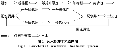 1、工程概況 某市污水處理廠一期工程共分四個階段進行,96年7月至98年4月做污水處理廠前期可研及污水管網(wǎng)、廠區(qū)設計工作,98年5月至2001年7月廠區(qū)工程及外圍26.412km管網(wǎng)工程建設;2001年9月至2003年1月一期完善生化處理工程,2004年10月后,建設完善支管網(wǎng)及新區(qū)管網(wǎng)工程,整體工程投資額1.9億元人民幣,服務范圍是巢湖市新老城區(qū)工業(yè)及生活污水,處理規(guī)模60000m3/d。2、工藝及試運行情況2.1工藝流程圖 污水處理廠采用除磷脫氮氧化溝處理工藝,其工藝流程如圖1: