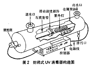 20世紀70年代以后,人們發(fā)現傳統的氯消毒會產生致畸、致癌、致突變的鹵代烷等副產物[1],而UV消毒法則具有不投加化學藥劑、不增加水的嗅和味、不產生有毒有害的副產物、消毒速度快、效率高、設備操作簡單、便于運行管理和實現自動化等優(yōu)點,近20年來逐漸得到廣泛應用。1 消毒原理 根據生物效應的不同,將紫外線按照波長劃分為四個部分:A波段(UV—A),又稱為黑斑效應紫外線(400~320nm);B波段(UV—B),又稱為紅斑效應紫外線(320~275nm);C波段(UV—C),又稱為滅菌紫外線(275~200nm);D波段(UV—D),又稱為真空紫外線(200~10nm)。水消毒主要采用的是C波段紫外線。 研究表明,紫外線主要是通過對微生物(細菌、病毒、芽孢等病原體) 的輻射損傷和破壞核酸的功能使微生物致死,從而達到消毒的目的。紫外線對核酸的作用可導致鍵和鏈的斷裂、股間交聯和形成光化產物等[2],從而改變了DNA的生物活性,使微生物自身不能復制,這種紫外線損傷也是致死性損傷。2 UV消毒器的結構形式 UV消毒器按水流邊界的不同分為敞開式和封閉式。?2.1 敞開式系統 在敞開式UV消毒器中被消毒的水在重力作用下流經UV消毒器并滅活水中的微生物。敞開式系統又可分為浸沒式和水面式兩種。