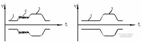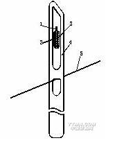 接觸式經(jīng)紗斷頭電氣自停裝置以經(jīng)停片3和相互絕緣的正、負(fù)電極1、2組成檢測(cè)部分,見(jiàn)圖11-11。當(dāng)經(jīng)紗4斷頭或過(guò)度松弛時(shí),經(jīng)停片3下落,使電極1、2導(dǎo)通,產(chǎn)生經(jīng)停信號(hào)。