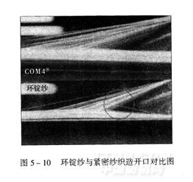 在織機(jī)高速化和無梭引緯技術(shù)普遍應(yīng)用的今天,影響紗線可織造性能的有三個(gè)因素:一個(gè)是紗線的強(qiáng)伸性能,另一個(gè)是紗線的耐磨性能,第三個(gè)是紗線的毛羽數(shù)量。紗線的強(qiáng)伸性能和耐磨性能不好,紗線容易斷頭,織造速度提不上去,不能實(shí)現(xiàn)織機(jī)高速化,同時(shí)織疵也增多,影響坯布質(zhì)量。紗線的毛羽數(shù)量多,織造開口不清,紗線容易斷頭,織造速度也提不上去,織機(jī)高速化同樣不能實(shí)現(xiàn)。與傳統(tǒng)環(huán)錠紗相比,緊密紗毛羽少,強(qiáng)力高、耐磨好,恰恰在這些方面都具有優(yōu)勢(shì)(圖 5—10)。