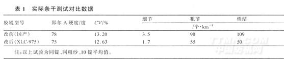 公司在2003年7月中旬,試用一臺(tái)車WJ465抗繞表面不處理膠輥,取得良好紡紗效果,于2003年11月中旬推廣應(yīng)用11臺(tái)車,經(jīng)大面積使用證實(shí),該膠輥成紗質(zhì)量始終穩(wěn)定在條干5%水平以內(nèi),上車不產(chǎn)生中凹變形,硬度穩(wěn)定,抗繞性好,回磨周期控制在六個(gè)月左右。