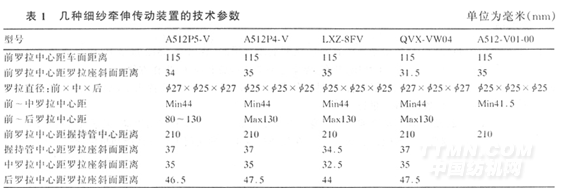 2.1 幾種細(xì)紗牽伸傳動(dòng)裝置的技術(shù)參數(shù)見表1。