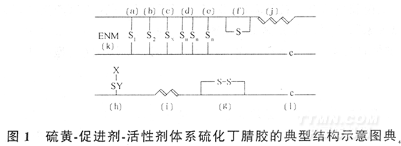 關(guān)于這種體系硫化橡膠的結(jié)構(gòu)如圖1所示。