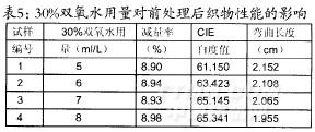2_2雙氧水用量對(duì)織物纖維性能處理效果的影響