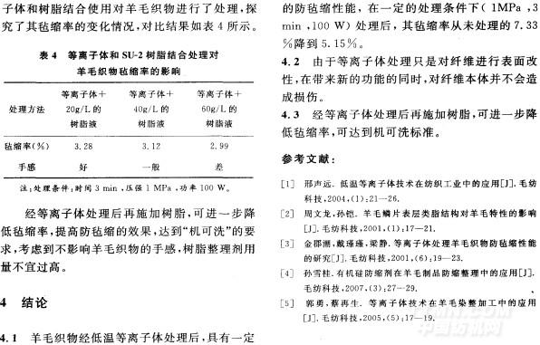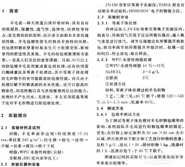關(guān)鍵詞:等離子體處理;羊毛織物;防氈縮;整理