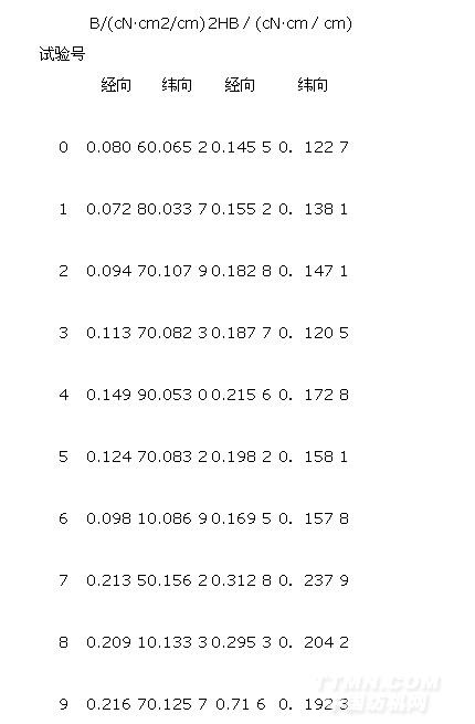 B表示織物的身骨(剛?cè)嵝裕?,B值越小,織物越柔軟;2HB表示織物的活絡(luò)觶跳性),2HB值越小,織物彎曲變形后的回復(fù)能力越好。