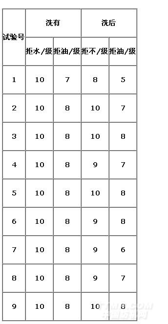 (2)織物經過拒水拒油處理,風格有一定改變,如柔軟感、彎曲變形回復能力、拉伸彈性有所下降:織物的壓縮彈性,尺寸穩(wěn)定性和蓬松感提高,織物抵抗剪切變形、回復能力增強。