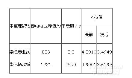 未經(jīng)抗靜電劑整理織物的靜電性能和K/S值測試結(jié)果見表1。