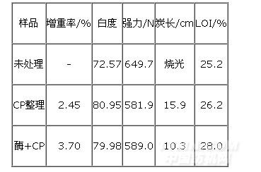 (3)本試驗(yàn)研究的主要側(cè)重點(diǎn)是酶預(yù)處理能否提高阻燃整理羊毛的阻燃性能。阻燃性能提高了,要達(dá)到同樣的阻燃效果可減少阻燃劑用量,甲醛含量也相應(yīng)減少。關(guān)于甲醛含量問題,筆者另文闡述。
