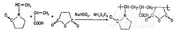 馬來(lái)酸酐、丙烯酸和適量的水經(jīng)堿中和后,加人過(guò)硫酸銨一亞硫酸氫鈉(氧化還原型引發(fā)劑),滴加乙烯基吡咯烷酮和膠體保護(hù)劑P,逐步升溫至95℃共聚反應(yīng)5h,得無(wú)色或淺黃色透明水溶性高聚物,即為低溫皂洗劑JY.1103D。合成反應(yīng)式如下: