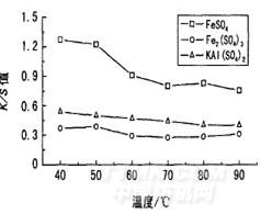 經(jīng)硫酸亞鐵媒染后,織物的K/S值隨著溫度的升高而呈降低的趨勢,但趨勢減緩。原因是隨著溫度的升高,茶多酚對棉織物的親和力降低,使棉織物上茶多酚的吸附量減少,導(dǎo)致媒染生成的茶多酚/亞鐵絡(luò)合物數(shù)量減少。但是,織物經(jīng)硫酸鐵和硫酸鋁鉀媒染后,其K/S值隨溫度的升高而略微降低。這可能與金屬離子和茶多酚絡(luò)合的配位數(shù)是一定的有關(guān),也與吸附在纖維上金屬離子的數(shù)量有關(guān)。