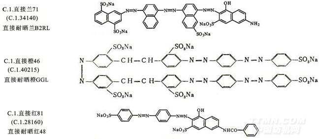 圖6 直接染料三原色的化學(xué)結(jié)構(gòu)式