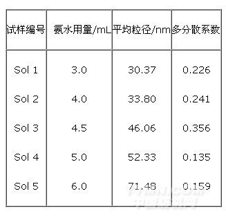 表1 氨水用量對(duì)二氧化硅溶膠粒徑的影響