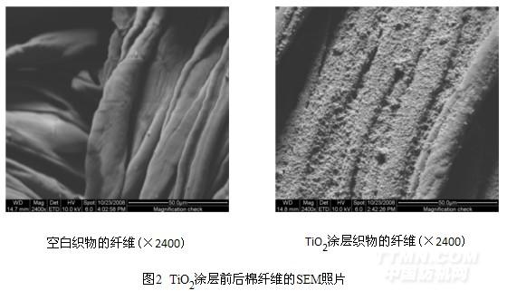 2.1 TiO2涂層前后織物及纖維的形貌
