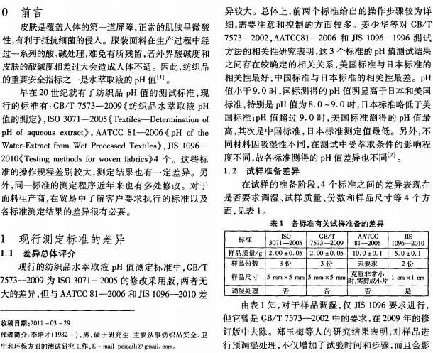 紡織品水萃取液pH值測(cè)定標(biāo)準(zhǔn)的差異分析