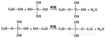 經(jīng)浸漬焙烘工藝整理的棉織物,其自清潔功能具有較好的耐久性,主要是由于高溫焙烘時,TiO2溶膠的大部分羥基與棉纖維中的羥基發(fā)生脫水反應(yīng),形成網(wǎng)狀結(jié)構(gòu)的多元共價交聯(lián)[11],其結(jié)合力較牢固。此外,少部分TiO2溶膠還可以與棉纖維發(fā)生一元共價交聯(lián),或自交聯(lián)后吸附在棉纖維表面,但其結(jié)合力較弱。