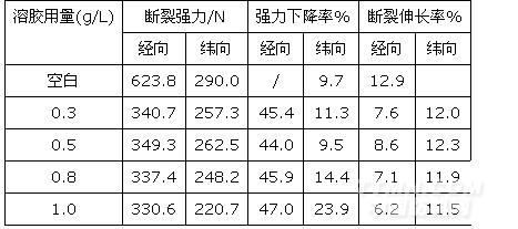 表1 溶膠用量對棉織物斷裂強(qiáng)力和伸長率的影響