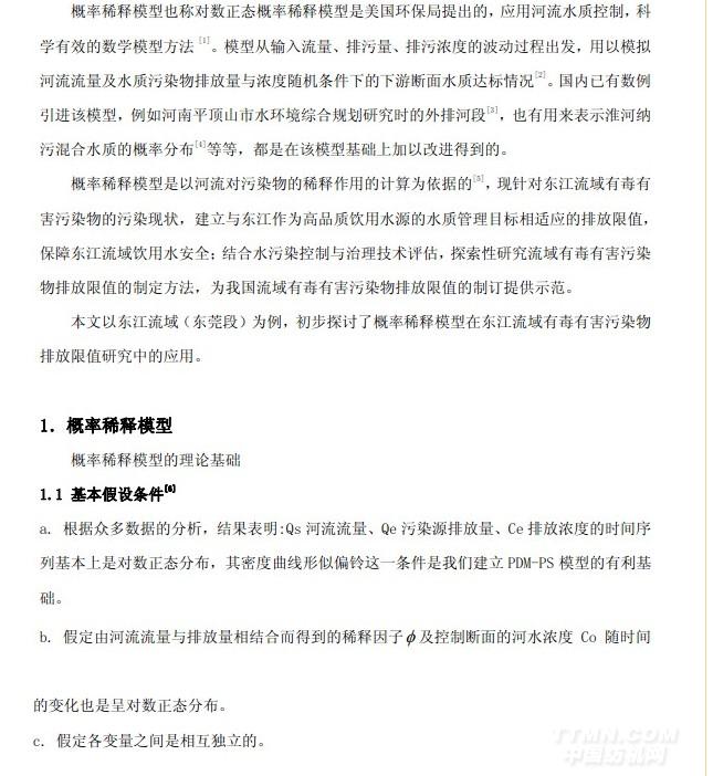 概率稀釋模型在東江流域(東莞段)有毒有害污染物排放